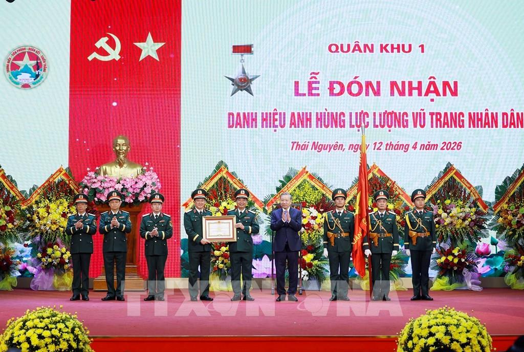 Tổng Bí thư, Chủ tịch nước Tô Lâm trao Danh hiệu Anh hùng Lực lượng vũ trang nhân dân tặng Quân khu 1. Ảnh: Thống Nhất - TTXVN
