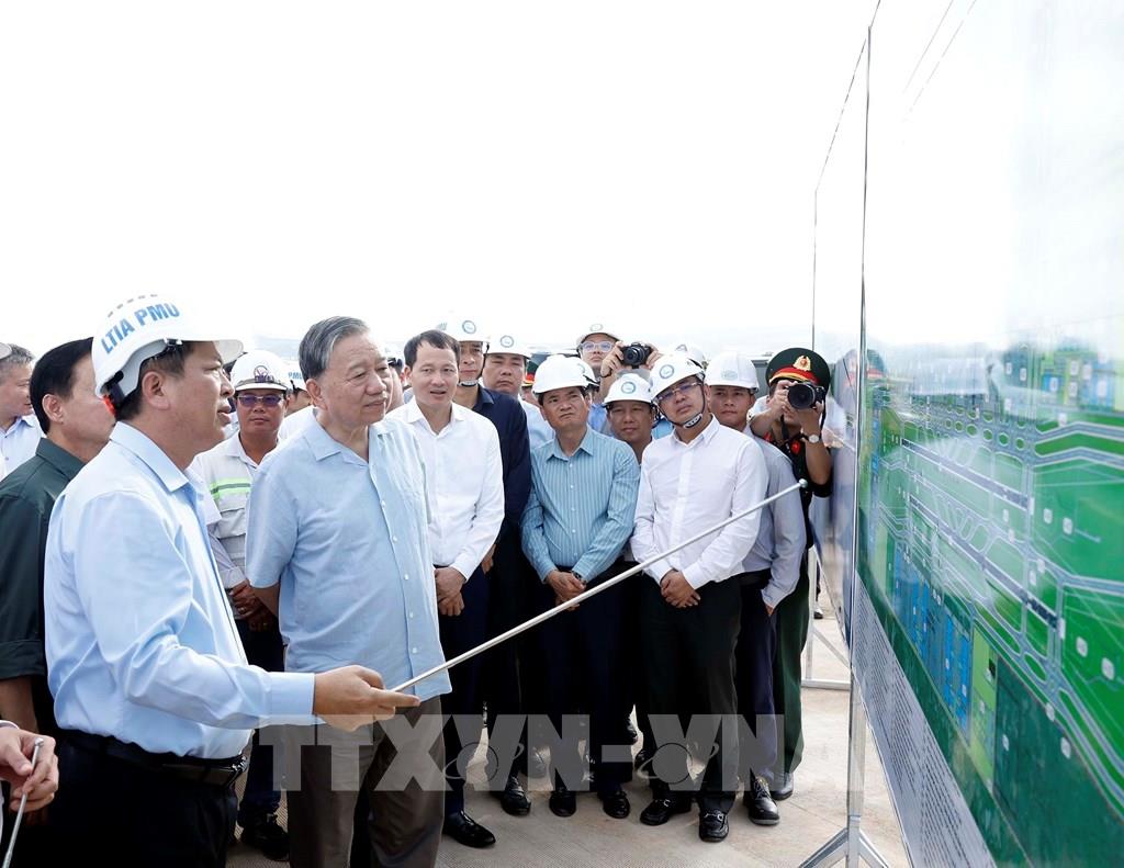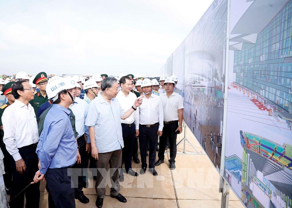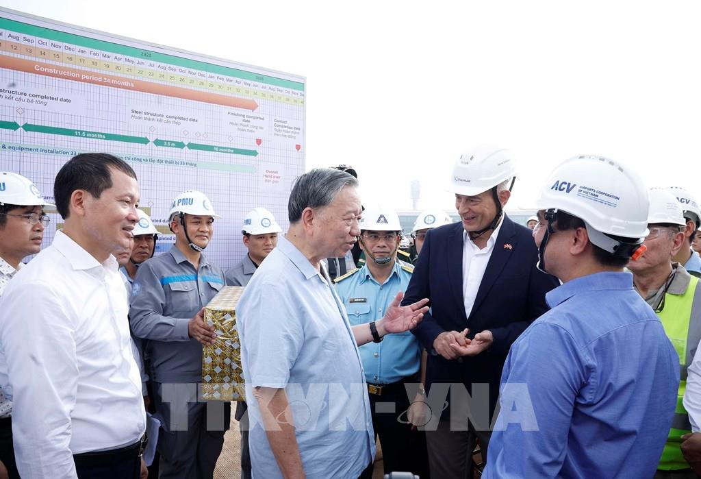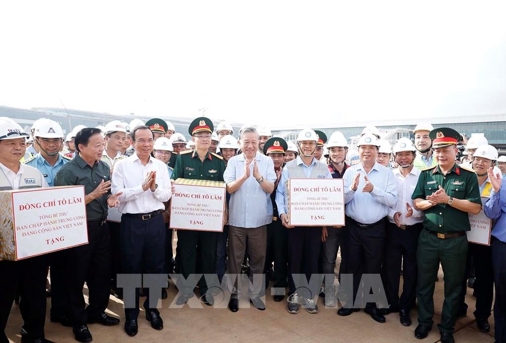 Tổng Bí thư nhấn mạnh, khi hoàn thành Cảng hàng không quốc tế Long Thành sẽ giải tỏa áp lực cho Cảng hàng không quốc tế Tân Sơn Nhất; thúc đẩy liên kết vùng trong không gian phát triển vùng Đông Nam Bộ và khẳng định vị thế địa chiến lược của Việt Nam trên bản đồ hàng không của khu vực châu Á - Thái Bình Dương. Tổng Bí thư tin tưởng, dưới sự lãnh đạo của Đảng, sự chỉ đạo quyết liệt của Chính phủ, sự phối hợp hiệp đồng của các bộ, ngành, các địa phương, doanh nghiệp và tinh thần cống hiến của hàng vạn người lao động, Cảng hàng không quốc tế Long Thành giai đoạn 1 sẽ hoàn thành đúng tiến độ, đạt chất lượng quốc tế, an toàn tuyệt đối, trở thành biểu tượng của Việt Nam hiện đại, năng động và phát triển bền vững trong giai đoạn mới. Trước đó, Tổng Bí thư Tô Lâm và Đoàn công tác Trung ương đã đến thăm và tặng quà, động viên các đơn vị thi công tại khu vực đường cất hạ cánh thứ I; khu vực sân đỗ.Tin liên quan
