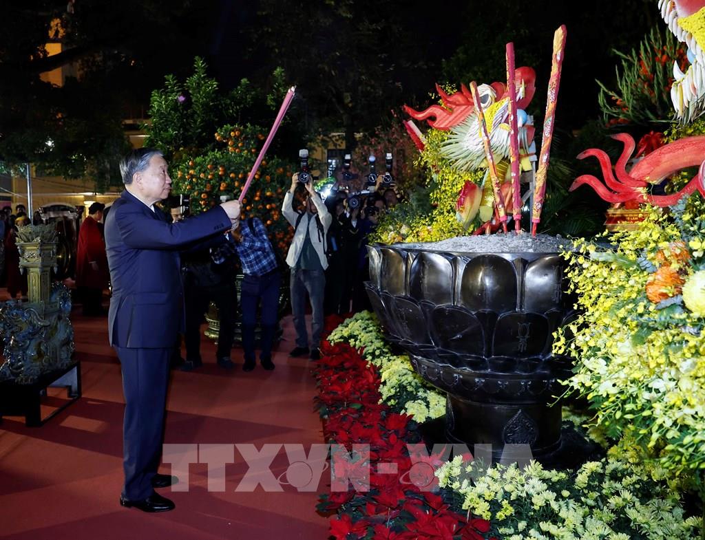 Tổng Bí thư Tô Lâm dâng hương tại tượng đài Vua Lý Thái Tổ. Ảnh: Thống Nhất - TTXVN