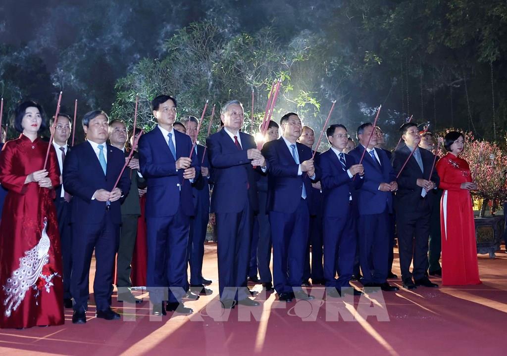 Tổng Bí thư Tô Lâm và các đại biểu dâng hương tại tượng đài Vua Lý Thái Tổ. Ảnh: Thống Nhất - TTXVN