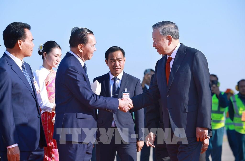 Tổng Bí thư Tô Lâm đến thủ đô Viêng Chăn, bắt đầu thăm cấp Nhà nước tới Lào