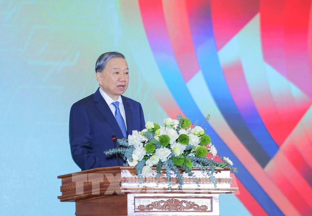 Tổng Bí thư Tô Lâm, Trưởng ban Chỉ đạo Trung ương về phát triển khoa học, công nghệ, đổi mới sáng tạo và chuyển đổi số dự và phát biểu chỉ đạo tại buổi Lễ.