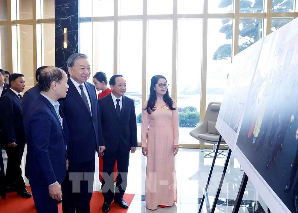 Tổng Bí thư Tô Lâm tham quan không gian trưng bày ảnh, do Thông tấn xã Việt Nam và Hội Nghệ sĩ nhiếp ảnh Việt Nam phối hợp thực hiện. Ảnh: Thống Nhất - TTXVN