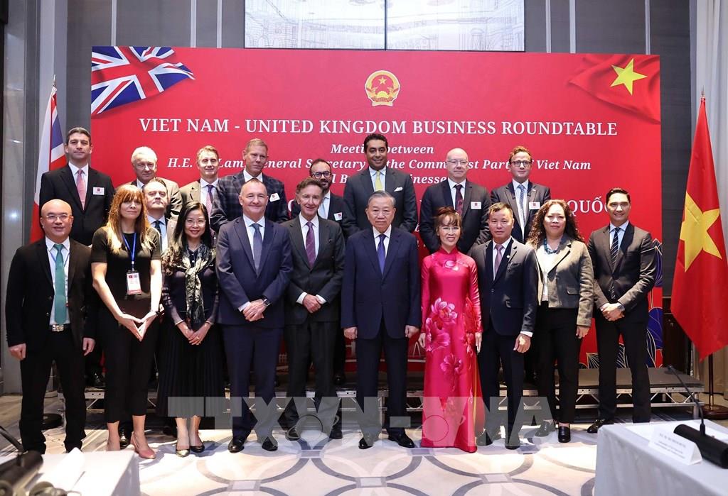 Tổng Bí thư Tô Lâm và các đại biểu tham dự Toạ đàm doanh nghiệp Việt Nam – Anh quốc. Ảnh: Thống Nhất – TTXVN