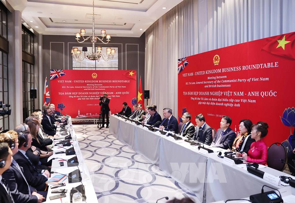 Tổng Bí thư Tô Lâm dự Toạ đàm doanh nghiệp Việt Nam – Anh quốc. Ảnh: Thống Nhất – TTXVN