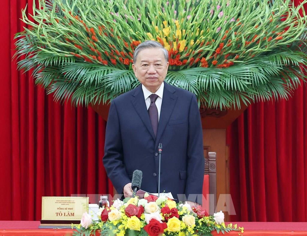Tại buổi gặp mặt, Tổng Bí thư Tô Lâm chúc mừng toàn thể cán bộ, hội viên Hội Nông dân Việt Nam nhân kỷ niệm 95 năm Ngày thành lập Hội và chúc mừng, khen ngợi 95 Nông dân xuất sắc và Nhà khoa học của nhà nông năm 2025.