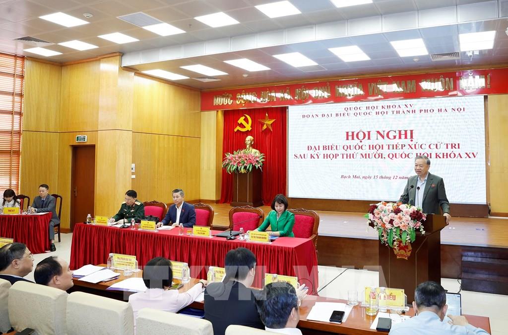 Sáng 15/12, tại Trụ sở Hội đồng nhân dân, Ủy ban nhân dân phường Bạch Mai, Tổng Bí thư Tô Lâm cùng các thành viên Đoàn đại biểu Quốc hội thành phố Hà Nội, đơn vị bầu cử số 1 đã tiếp xúc cử tri 11 phường (Ba Đình, Ngọc Hà, Giảng Võ, Đống Đa, Kim Liên, Văn Miếu - Quốc Tử Giám, Láng, Ô Chợ Dừa, Hai Bà Trưng, Vĩnh Tuy, Bạch Mai), thông báo kết quả Kỳ họp thứ 10, Quốc hội khóa XV và lắng nghe các ý kiến, kiến nghị của cử tri.