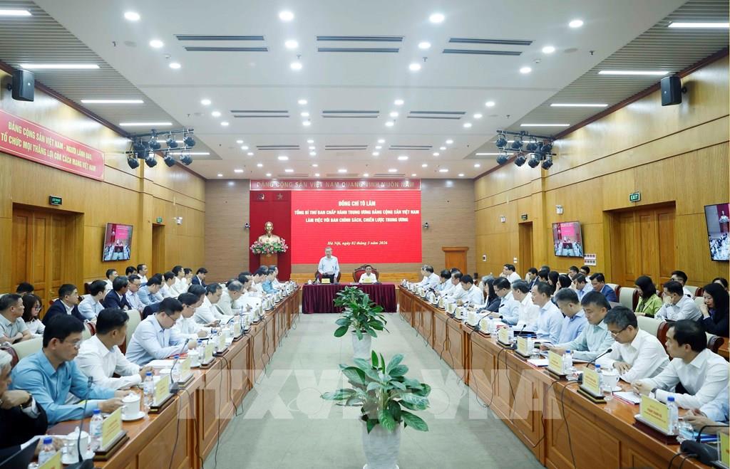 Chiều 2/3, Tổng Bí thư Tô Lâm làm việc với Ban Chính sách, chiến lược Trung ương về việc xây dựng Nghị quyết của Trung ương về giải pháp chiến lược thúc đẩy tăng trưởng kinh tế hai con số gắn với xác lập mô hình tăng trưởng mới.