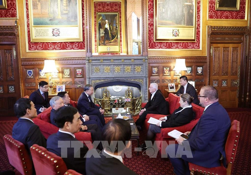 Ngày 29/10 (theo giờ địa phương), Tổng Bí thư Ban Chấp hành Trung ương Đảng Cộng sản Việt Nam Tô Lâm đã có cuộc hội kiến với Chủ tịch Thượng viện Anh John Mcfall (Nam tước McFall Xứ Alcluith).