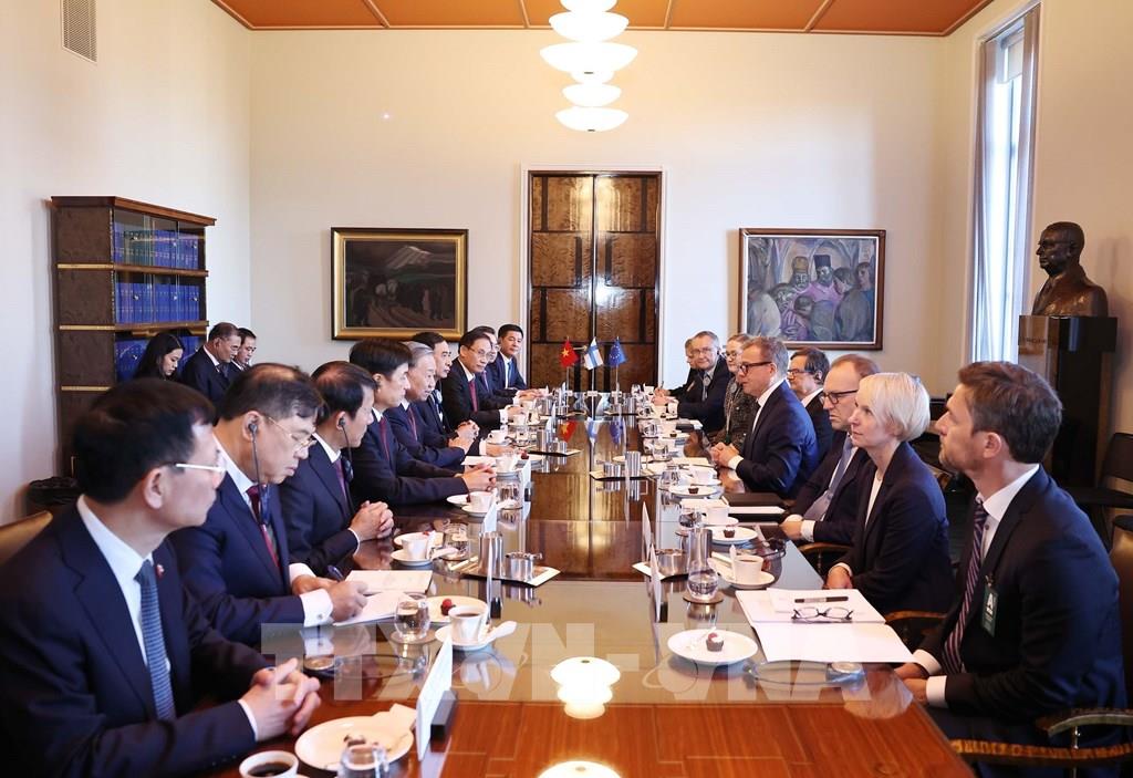 Nhất trí với những nội dung hợp tác do Tổng Bí thư đề xuất, Thủ tướng Petteri Orpo khẳng định với nền tảng quan hệ Đối tác Chiến lược vừa được thiết lập, Chính phủ Phần Lan sẽ tiếp tục ủng hộ thúc đẩy quan hệ song phương với trọng tâm là đẩy mạnh kinh tế - thương mại - đầu tư, khoa học - công nghệ, kinh tế xanh, kinh tế tuần hoàn, năng lượng tái tạo, chuyển đổi số, đổi mới sáng tạo, y tế... và tạo điều kiện thúc đẩy các doanh nghiệp Phần Lan mở rộng hợp tác tại Việt Nam.