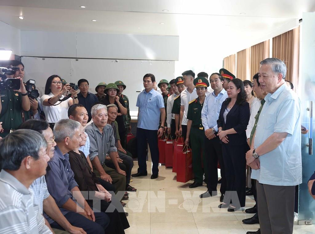 Tổng Bí thư Tô Lâm thăm hỏi, đọng viên và tặng quà nhân dân tỉnh Thái Nguyên. Ảnh: Thống Nhất-TTXVN