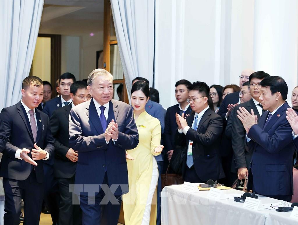 Phát biểu tại Hội nghị, Tổng Bí thư Tô Lâm chỉ rõ thế giới đã và đang trải qua nhiều biến động phức tạp, khó đoán định không chỉ về địa chính trị mà còn về kinh tế, thương mại, đồng thời cũng xuất hiện nhiều cơ hội và thách thức mới; khẳng định bằng nỗ lực, quyết tâm và sự đồng lòng của Đảng, Nhà nước và nhân dân cùng cộng đồng doanh nghiệp, Việt Nam đã duy trì sự ổn định toàn diện và phát triển mạnh mẽ, trở thành điểm sáng về tăng trưởng và phát triển kinh tế nhanh và bền vững trong khu vực và trên thế giới.