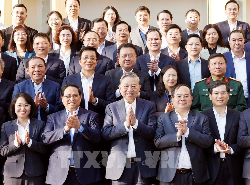 Tổng Bí thư Tô Lâm, Thủ tướng Phạm Minh Chính và các đại biểu. Ảnh: Thống Nhất -TTXVN.