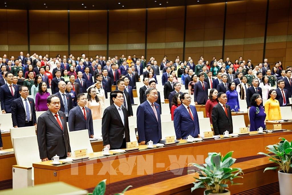 Tổng Bí thư Tô Lâm cùng các đồng chí lãnh đạo, nguyên lãnh đạo Đảng, Nhà nước và đại biểu Quốc hội dự khai mạc Kỳ họp thứ Nhất, Quốc hội khóa XVI. Ảnh: Doãn Tấn - TTXVN