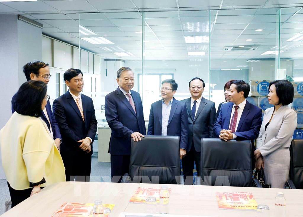 Tổng Bí thư Tô Lâm tới thăm nơi làm việc của cán bộ, phóng viên, biên tập viên, kỹ thuật viên và người lao động Đài Tiếng nói Việt Nam. Ảnh: Thống Nhất-TTXVN