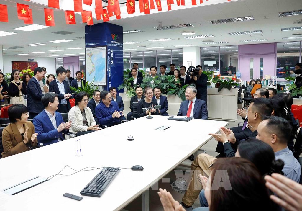 Gặp gỡ, động viên và chia sẻ với đội ngũ phóng viên, biên tập viên, kỹ thuật viên đang làm việc trong những ngày nghỉ Tết, Tổng Bí thư Tô Lâm nhấn mạnh, nghề báo nói chung, đặc biệt là báo hình, đòi hỏi sự hy sinh lớn khi nhiều người không có kỳ nghỉ Tết trọn vẹn bên gia đình. Tuy vậy, đây cũng là công việc đầy tự hào, bởi mỗi sản phẩm truyền hình là cầu nối đưa thông tin chính xác, kịp thời đến hàng triệu khán giả cả nước.Trong thời gian tới, Tổng Bí thư Tô Lâm nhấn mạnh Đài Truyền hình Việt Nam cần tập trung vào những thông tin thời sự được dư luận quan tâm. Bên cạnh đó, cần nghiên cứu xây dựng các nền tảng, mạng lưới để tiếp nhận thông tin từ người dân trong và ngoài nước, tạo môi trường tương tác, phản hồi nhanh chóng, qua đó nâng cao chất lượng, sức hấp dẫn, sự lan tỏa của chương trình.