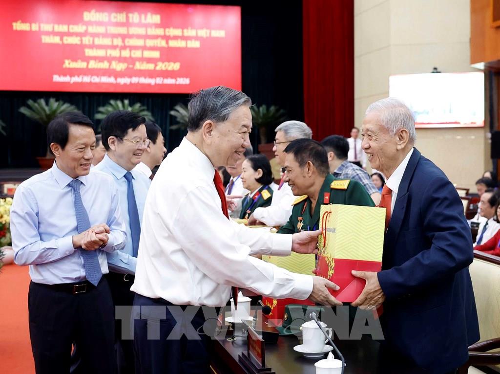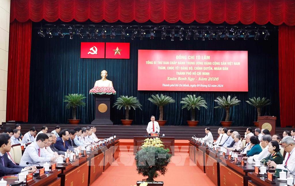 Tổng Bí thư Tô Lâm chúc Tết Đảng bộ, chính quyền và Nhân dân Thành phố Hồ Chí Minh. Ảnh: Thống Nhất – TTXVN