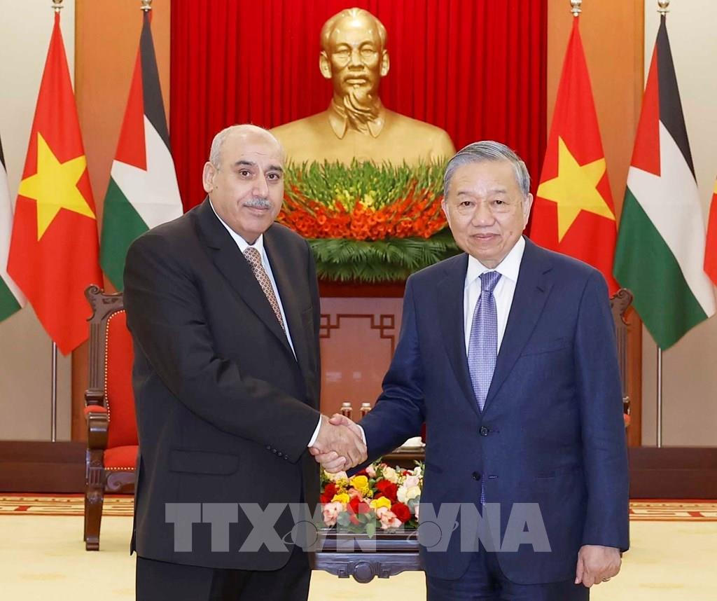 Tổng Bí thư Tô Lâm tiếp Chủ tịch Hạ viện Vương quốc Hashemite Jordan Mazen Turki El Qadi. Ảnh: Thống Nhất – TTXVN
