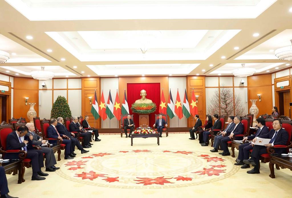 Tổng Bí thư nhấn mạnh, mặc dù có khoảng cách địa lý xa xôi, Jordan và Việt Nam đều đang ở những thời khắc có ý nghĩa sâu sắc trong kiến tạo kỷ nguyên phát triển mới và tích cực tham gia giải quyết các vấn đề chung của cộng đồng quốc tế. Trên tinh thần đó, Tổng Bí thư Tô Lâm khẳng định quyết tâm của Đảng, Nhà nước và nhân dân Việt Nam trong việc củng cố và thúc đẩy hơn nữa quan hệ hợp tác hữu nghị với Jordan, vì lợi ích của nhân dân hai nước, vì hòa bình và phát triển của khu vực và thế giới. Bày tỏ vui mừng lần đầu đến thăm đất nước Việt Nam có lịch sử hào hùng và anh dũng vào thời điểm vừa diễn ra nhiều sự kiện trọng đại, Chủ tịch Hạ viện Jordan Mazen Turki El Qadi chúc mừng thành công của Đại hội Đại biểu toàn quốc lần thứ XIV của Đảng Cộng sản Việt Nam và cá nhân Tổng Bí thư đã được tín nhiệm tái đắc cử. Chuyển lời thăm hỏi của Quốc vương Abdullah II Ibn Al-Hussein đến Tổng Bí thư và các nhà lãnh đạo cấp cao Việt Nam, Chủ tịch Hạ viện Jordan Mazen Turki El Qadi khẳng định Jordan và cá nhân Quốc vương rất coi trọng quan hệ với Việt Nam và đã tích cực chỉ đạo các cơ quan cả hành pháp và lập pháp Jordan thúc đẩy quan hệ hợp tác với Việt Nam ngay sau chuyến thăm vào tháng 11/2025. Đánh giá cao các thành tựu phát triển của Việt Nam, Chủ tịch Hạ viện Mazen Turki El Qadi cho biết Jordan mong muốn hợp tác và trao đổi kinh nghiệm trong các lĩnh vực Việt Nam có thế mạnh, đặc biệt về khoa học - công nghệ và các ngành công nghệ mới nổi.Chia sẻ những kết quả cụ thể, thực chất trong buổi hội đàm với Chủ tịch Quốc hội Trần Thanh Mẫn, Chủ tịch Hạ viện Jordan đánh giá hai nước còn rất nhiều tiềm năng hợp tác, đặc biệt trên các lĩnh vực kinh tế và quốc phòng - an ninh, nông nghiệp, y tế, du lịch…, đồng thời khẳng định cơ quan lập pháp Jordan sẽ ủng hộ, hỗ trợ hai Chính phủ thúc đẩy hợp tác theo hướng hiệu quả, thực chất, vì lợi ích của hai quốc gia, hai dân tộc. Về các định hướng lớn cho quan hệ hợp tác hữu nghị giữa Việt Nam và Jordan trong thời gian tới, Tổng Bí thư Tô Lâm và Chủ tịch Hạ viện Jordan Mazen Turki El Qadi thống nhất hai nước cần vun đắp quan hệ và lòng tin chính trị, đưa Việt Nam và Jordan trở thành những đối tác tin cậy hàng đầu của nhau tại mỗi khu vực, triển khai thực chất, hiệu quả và cụ thể các cam kết, thỏa thuận giữa hai bên, thúc đẩy hợp tác về quốc phòng - an ninh, kinh tế, phát triển bền vững… Về các vấn đề quốc tế và khu vực, hai bên nhất trí tăng cường ủng hộ lẫn nhau và phối hợp về lập trường trên cơ sở tôn trọng độc lập, chủ quyền, toàn vẹn lãnh thổ của các nước, giải quyết các tranh chấp bằng biện pháp hòa bình, thông qua đối thoại trên cơ sở luật pháp quốc tế và Hiến chương Liên hợp quốc. Hai nhà lãnh đạo cũng thống nhất sẽ hợp tác để đóng góp thiết thực, hiệu quả vào các nỗ lực thúc đẩy hòa bình, giải quyết xung đột và tái thiết tại khu vực, trong đó có việc tham gia tích cực, có trách nhiệm vào công việc của Hội đồng Hòa bình nhằm chấm dứt xung đột tại Dải Gaza mà Việt Nam và Jordan đều là thành viên, phù hợp với luật pháp quốc tế, Hiến chương Liên hợp quốc và lập trường nhất quán của hai nước về vấn đề Palestine./.Tin liên quan