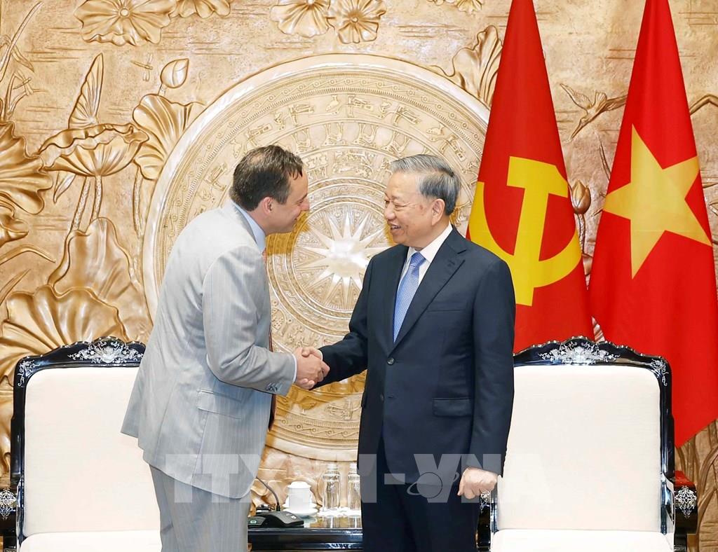 Tổng Bí thư Tô Lâm tiếp ông Scott Strazik, Chủ tịch kiêm Tổng Giám đốc điều hành Tập đoàn GE Vernova. Ảnh: Thống Nhất – TTXVN