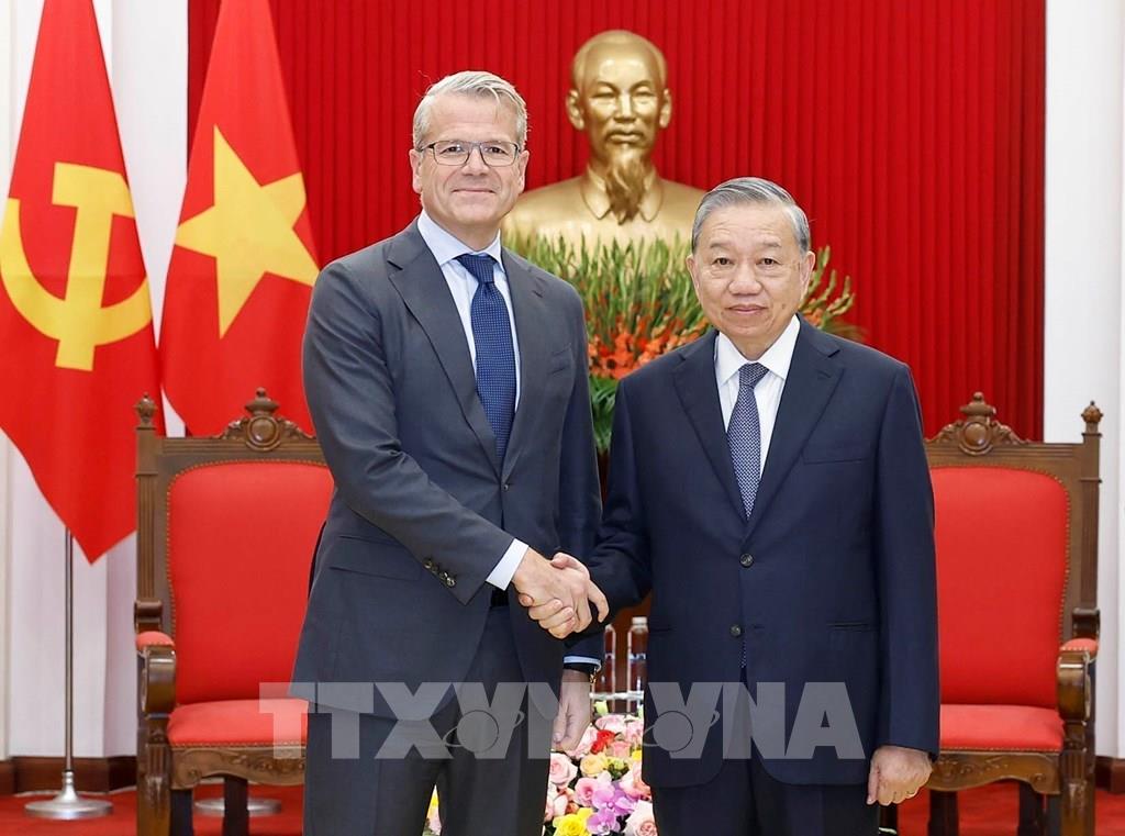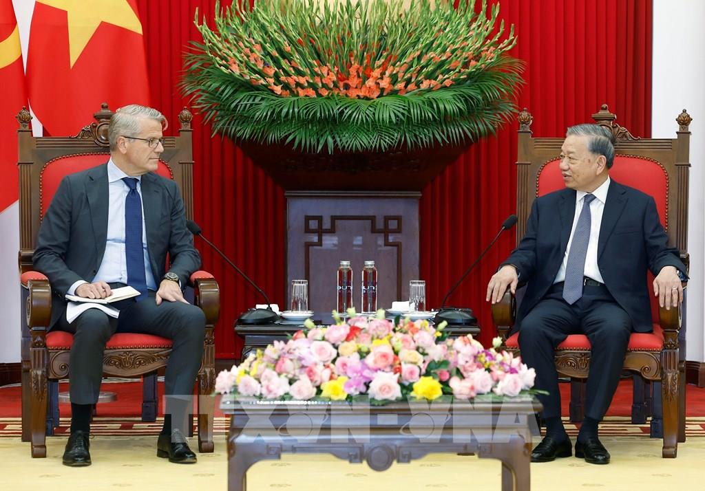Tổng Bí thư Tô Lâm tiếp ông Vincent Clerc, Tổng giám đốc toàn cầu Tập đoàn A.P. Moller-Maersk của Đan Mạch. Ảnh: Thống Nhất - TTXVN