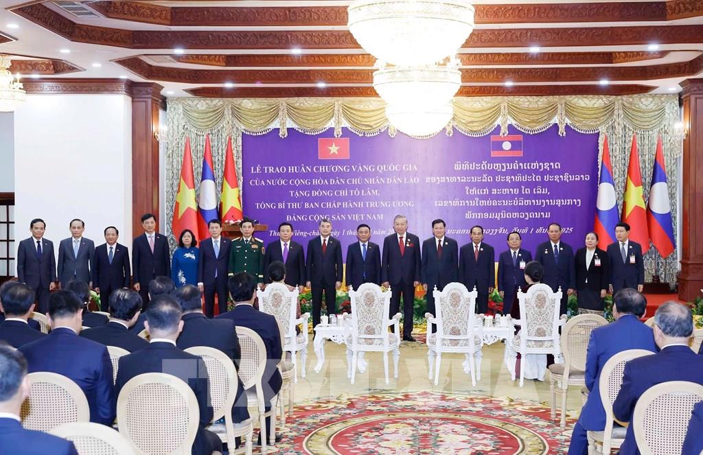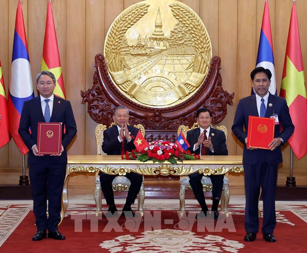 Theo đặc phái viên TTXVN, trong khuôn khổ chuyến thăm cấp Nhà nước Cộng hòa Dân chủ Nhân dân Lào, dự Lễ kỷ niệm 50 năm Quốc khánh nước Cộng hòa Dân chủ Nhân dân Lào và đồng chủ trì Cuộc gặp cấp cao giữa Đảng Cộng sản Việt Nam và Đảng Nhân dân Cách mạng Lào, trưa 1/12, ngay sau hội đàm, Tổng Bí thư Tô Lâm và Tổng Bí thư, Chủ tịch nước Lào Thongloun Sisoulith cùng Đoàn đại biểu cấp cao hai nước chứng kiến Lễ trao các văn kiện hợp tác.