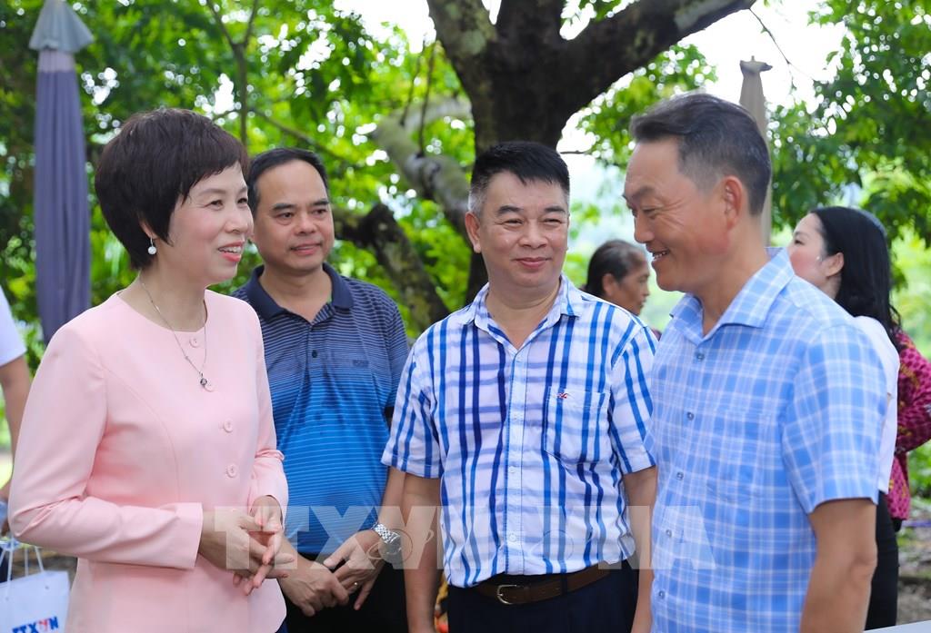 Tổng giám đốc, Chủ tịch Liên chi hội Nhà báo TTXVN Vũ Việt Trang thăm hỏi người dân gắn bó với Khu di tích tại xã Tân Trào, tỉnh Tuyên Quang. Ảnh: Thành Phương – TTXVN