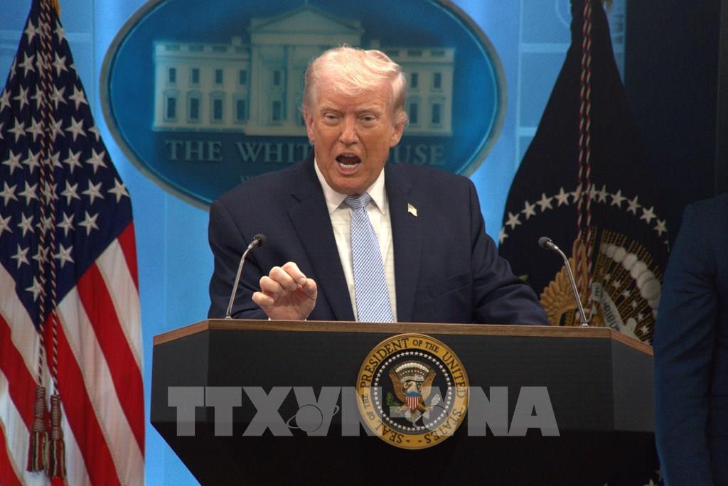Tổng thống Mỹ Donald Trump phát biểu tại cuộc họp báo ở Nhà Trắng, Washington, D.C. Ảnh: THX/TTXVN