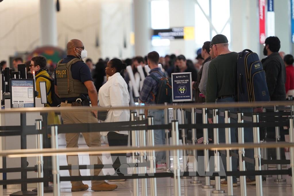 Đặc vụ của Cơ quan Thực thi Di trú và Hải quan (ICE) tuần tra tại sân bay La Guardia ở New York, Mỹ, ngày 23/3/2026. Ảnh: THX/TTXVN