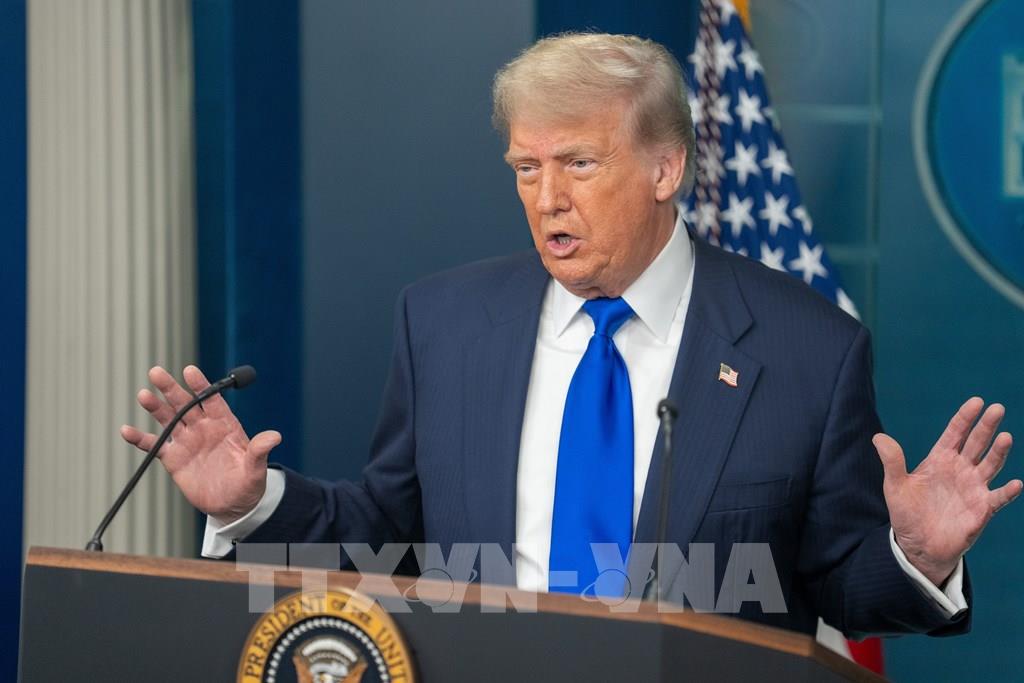 Tổng thống Mỹ Donald Trump phát biểu tại cuộc họp báo ở Nhà Trắng, Washington, D.C. Ảnh: THX/TTXVN