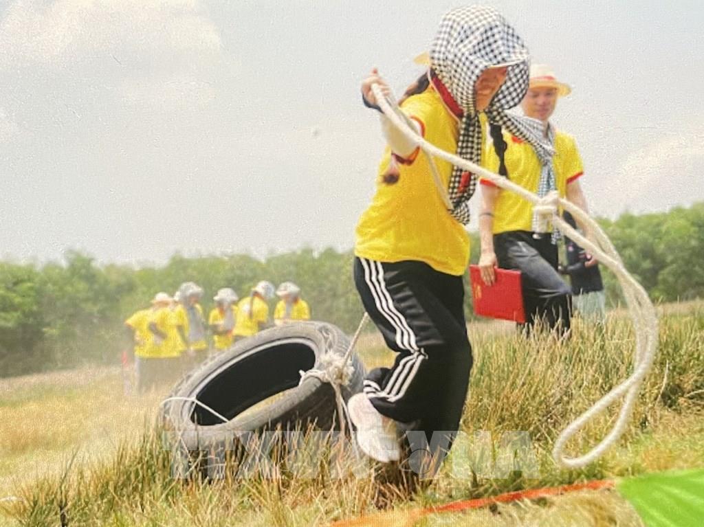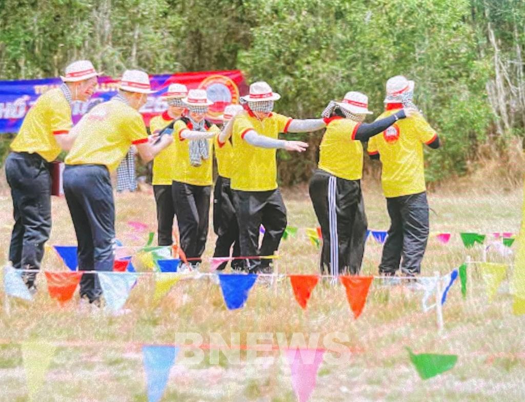 Hoạt động bịt mắt xác định phương hướng bằng tai trong trường hợp ở giữa rừng. Ảnh: Hồng Nhung - TTXVN