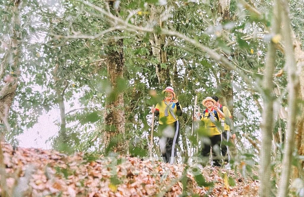 Du khách check-in giữa rừng. Ảnh: Hồng Nhung - TTXVN