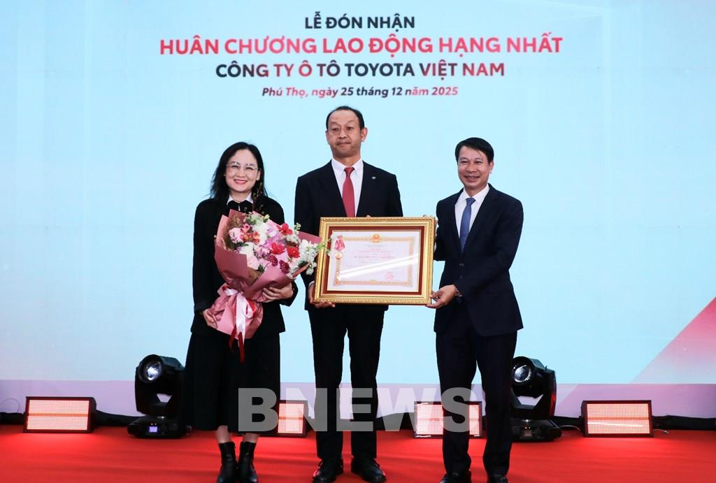 Công ty Ô tô Toyota Việt Nam vinh dự nhận Huân chương Lao động hạng Nhất - phần thưởng cao quý Nhà nước trao tặng. Ảnh: Văn Xuyên/BNEWS/TTXVN