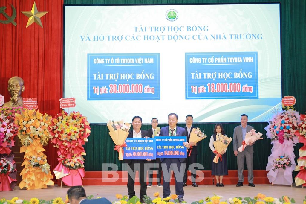 Bên cạnh đó, với mong muốn hỗ trợ nâng cao điều kiện học tập và rèn luyện của sinh viên, chương trình năm nay đã trao tặng 1 xe Avanza Premio và 1 xe Land Cruiser đã qua sử dụng cho hai trường Đại học, Cao đẳng để phục vụ công tác giảng dạy của các trường. Đồng thời, đại lý Toyota Vinh, Toyota Quảng Bình và Toyota Sông Lam cũng tham gia chương trình và trao tặng 8 suất học bổng với tổng giá trị 48 triệu đồng cho các sinh viên.