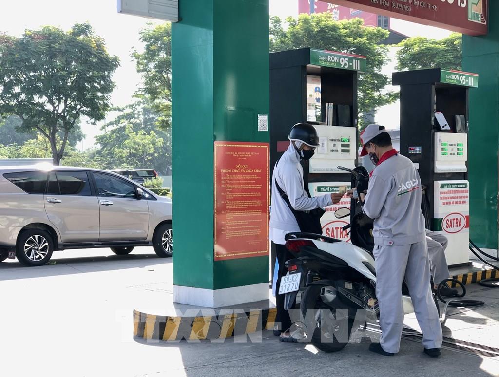 Người dân Thành phố Hồ Chí Minh mua xăng phục vụ việc đi lại. Ảnh: Mỹ Phương - TTXVN.