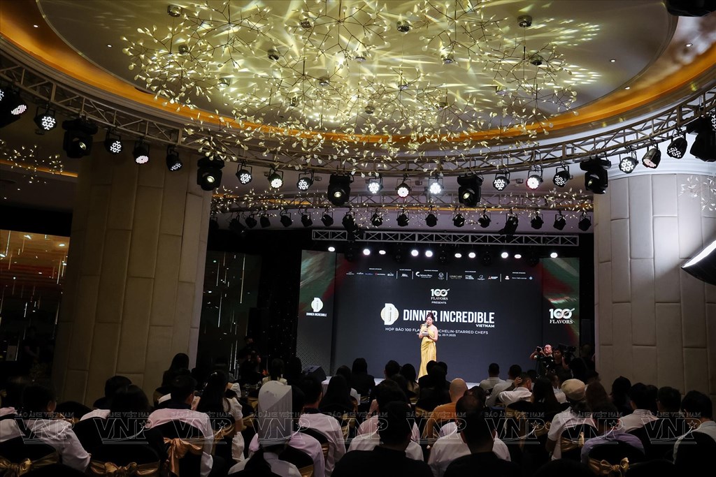 Toàn cảnh buổi họp báo giới thiệu Tuần lễ Ẩm thực “100 Flavors – Michelin Starred Chef”. Ảnh: vietnam.vnanet.vn