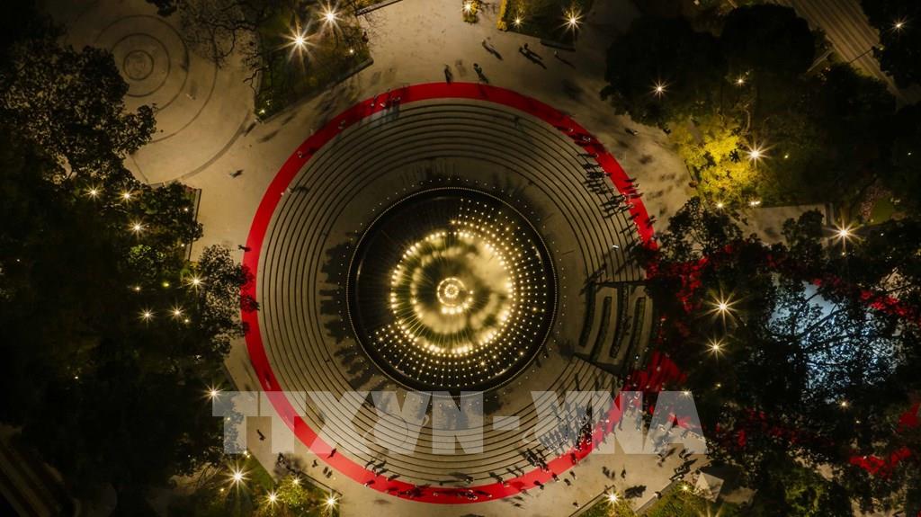 Công viên được xây dựng trên thửa đất hình tam giác và các nhà thiết kế đã khéo léo bo mềm các cạnh khu đất, đặt ở trung tâm công viên một quảng trường hình tròn rộng 1.800 m2. Ảnh: TTXVN phát