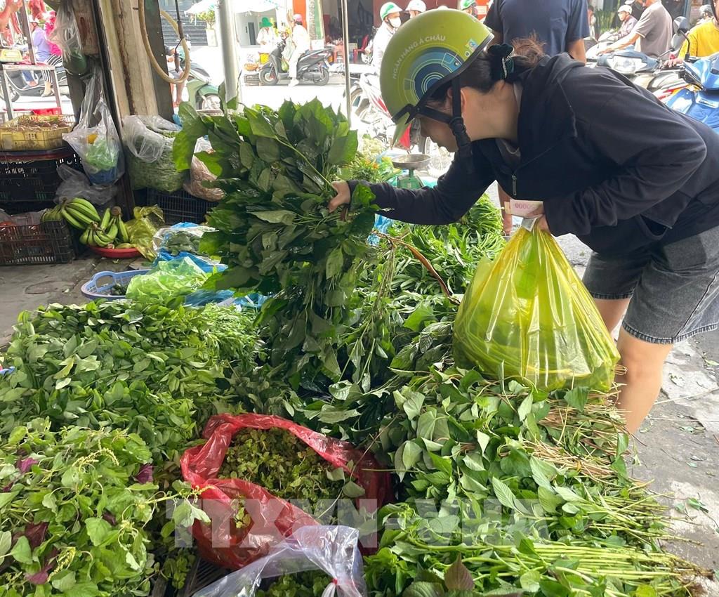 Nhiều loại rau xanh tại chợ tăng giá mạnh do nguồn cung hạn chế. Ảnh: Hương Giang - TTXVN