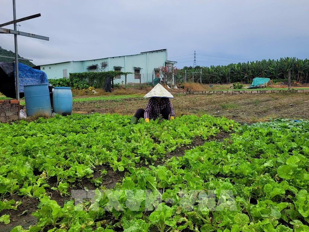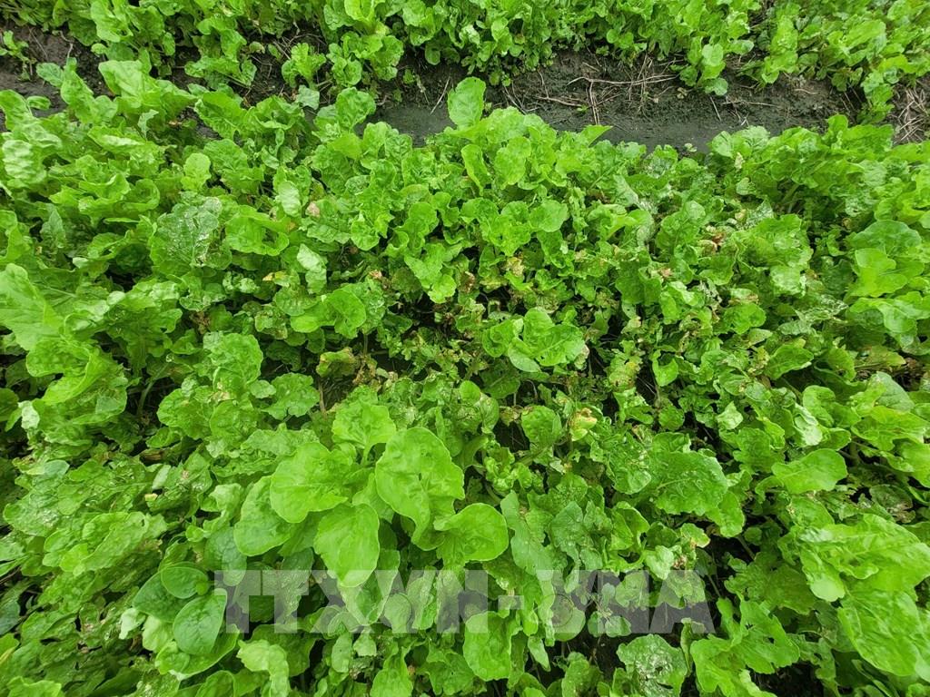 Nhiều vườn rau cải xoăn tại phường Long Hương, TP. Hồ Chí Minh bị dập úa, sâu bệnh do ảnh hưởng của mưa lớn kéo dài. Ảnh: Hoàng Nhị - TTXVN