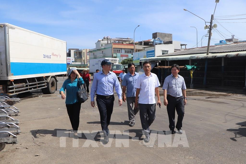 Phó Chủ tịch UBND TP. Hồ Chí Minh Hoàng Nguyên Dinh kiểm tra, khảo sát tại tại cảng cá Tân Phước, xã Long Hải. Ảnh: Hoàng Nhị - TTXVN