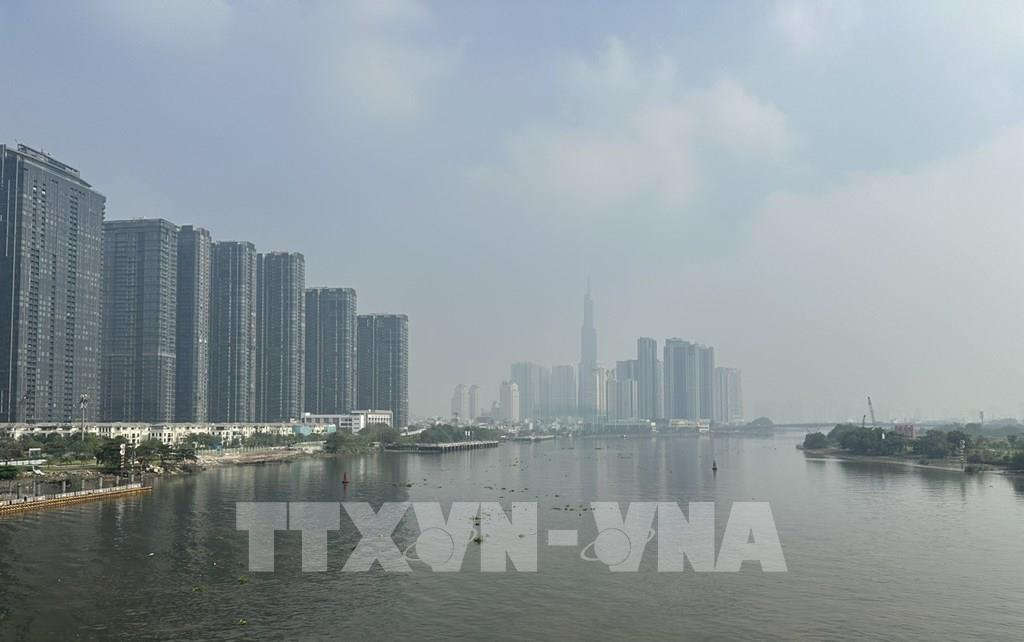 Sương mù bao phủ bầu trời TP. Hồ Chí Minh. Ảnh: Hương Giang - TTXVN