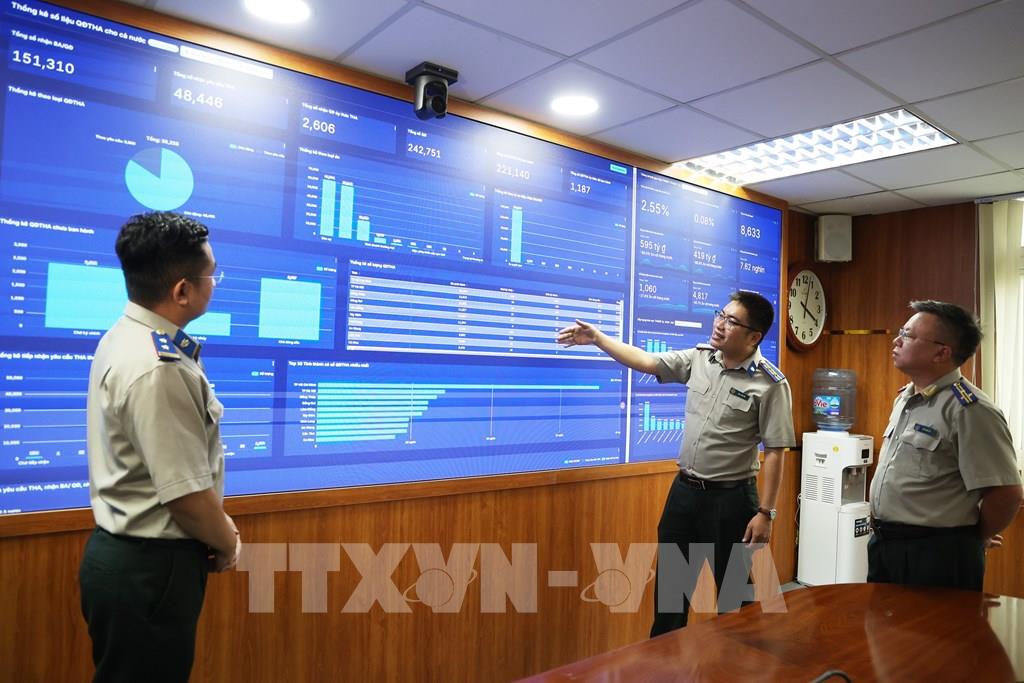 Trung tâm Giám sát và Điều hành thông minh (IOC) của Thi hành án dân sự TP. Hồ Chí Minh là trung tâm IOC của ngành Thi hành án dân sự đầu tiên của cả nước. Ảnh: Hồng Đạt - TTXVN