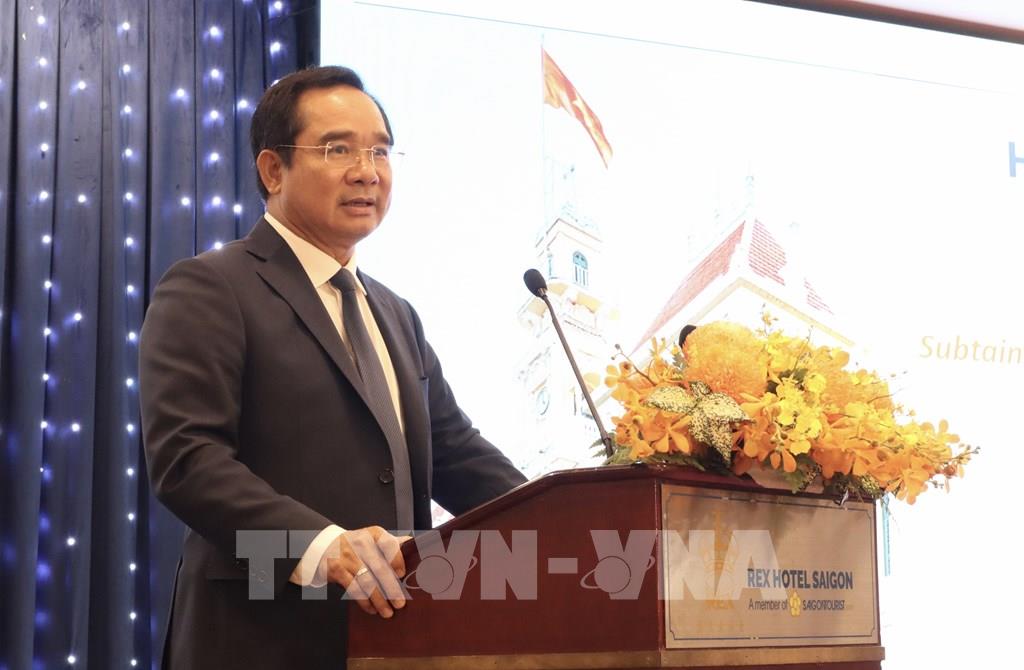 Ông Nguyễn Văn Được, Chủ tịch UBND TP. Hồ Chí Minh, phát biểu tại Hội nghị. Ảnh: Xuân Anh -TTXVN