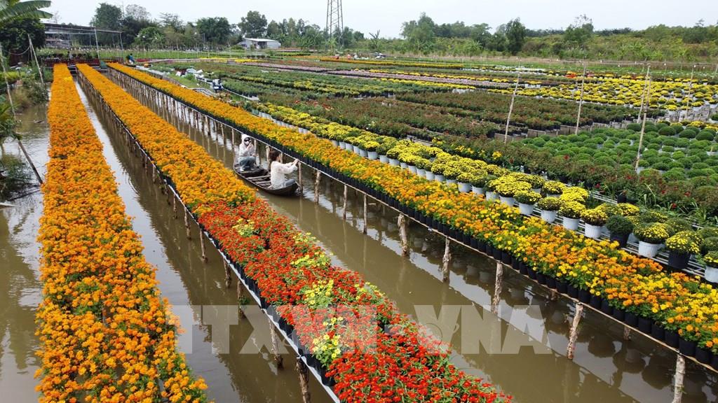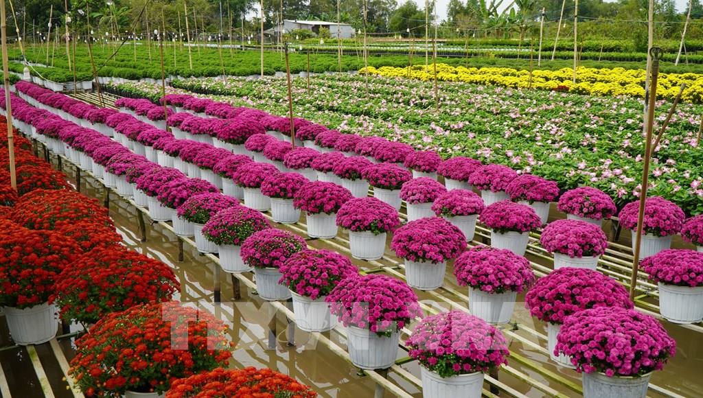 Tổ hợp tác sản xuất và cung ứng hoa, kiểng Tân An là một trong những địa điểm được du khách lựa chọn khi đến với Làng hoa Sa Đéc. Ảnh: Nhựt An - TTXVN