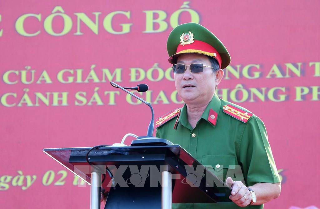 Đại tá Diệp Văn Thế, Phó Giám đốc Công an tỉnh An Giang phát biểu. Ảnh: Văn Sĩ - TTXVN