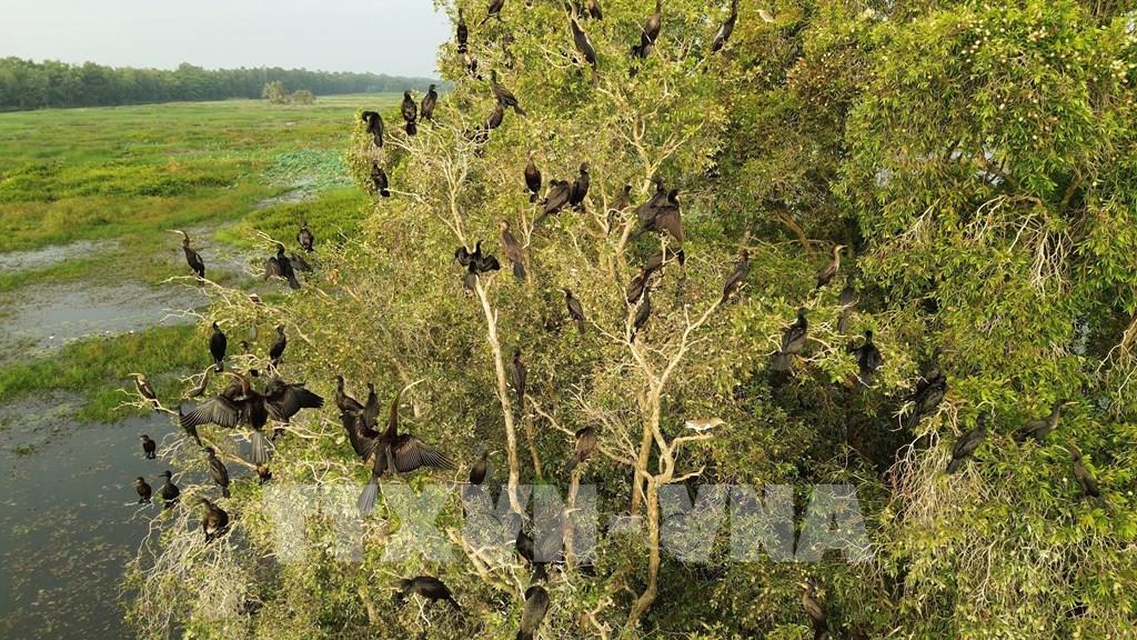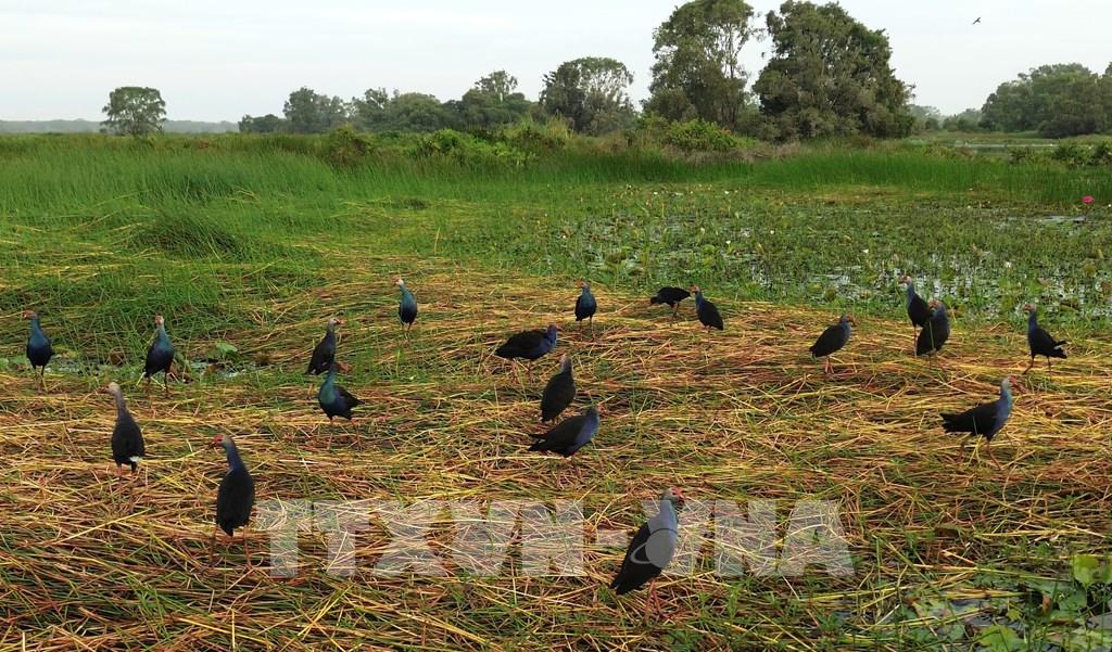 Nhiều loài chim về trú ngụ, sinh sống ở Vườn Quốc gia Tràm Chim. Ảnh: Nhựt An - TTXVN
