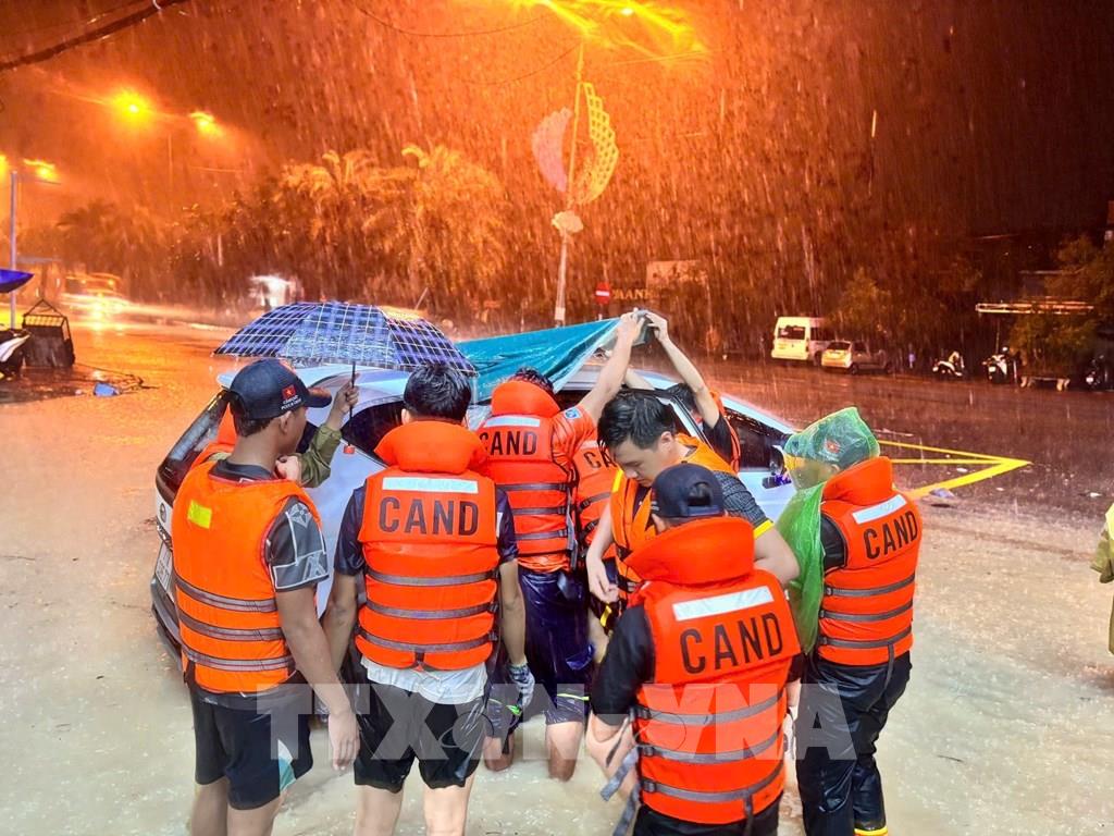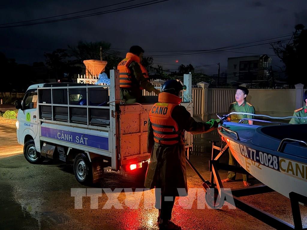 Lực lượng công an Gia Lai giúp dân ứng phó với mưa lũ. Ảnh: TTXVN phát