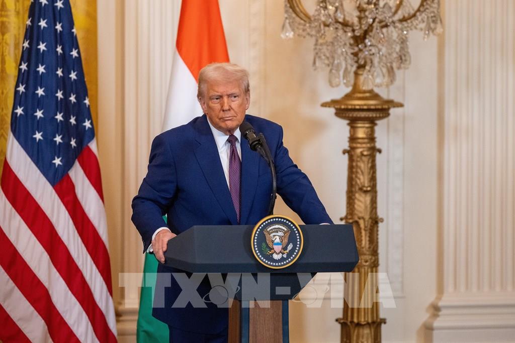 Tổng thống Mỹ Donald Trump phát biểu trong một cuộc họp báo tại Nhà Trắng ngày 13/2/2025. Ảnh: THX/TTXVN
