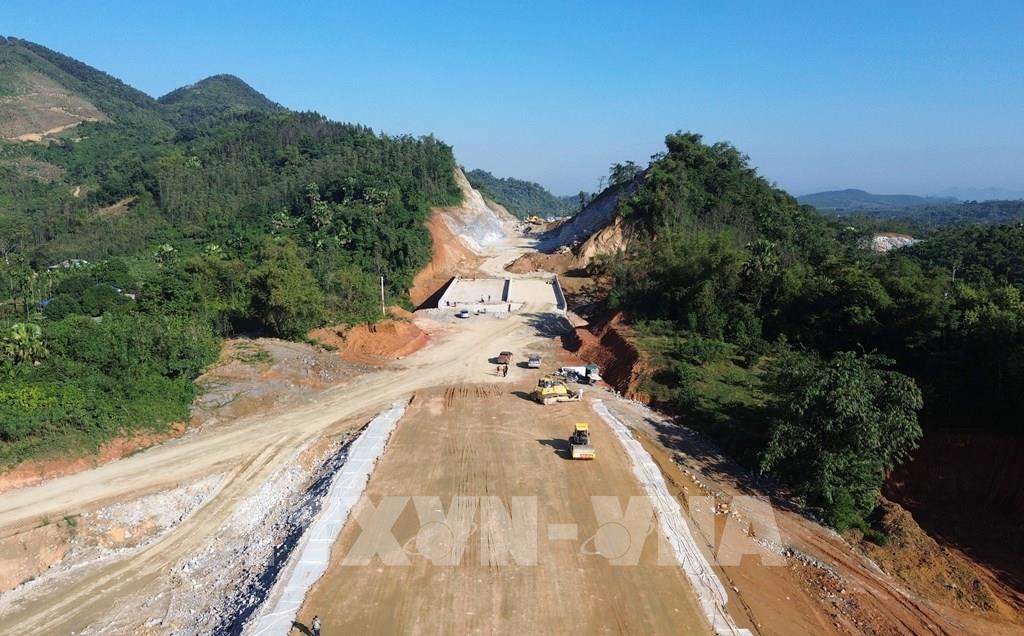 Không khí lao động khẩn trương trên tuyến cao tốc Tuyên Quang - Hà Giang. Ảnh: Quốc Khánh - TTXVN