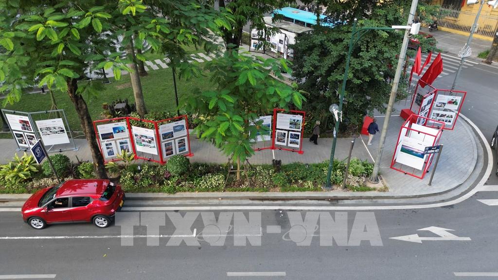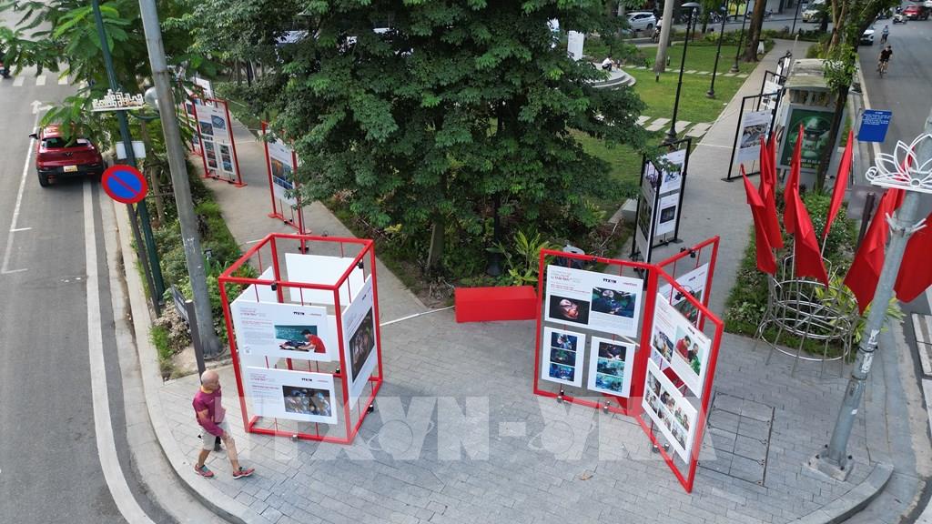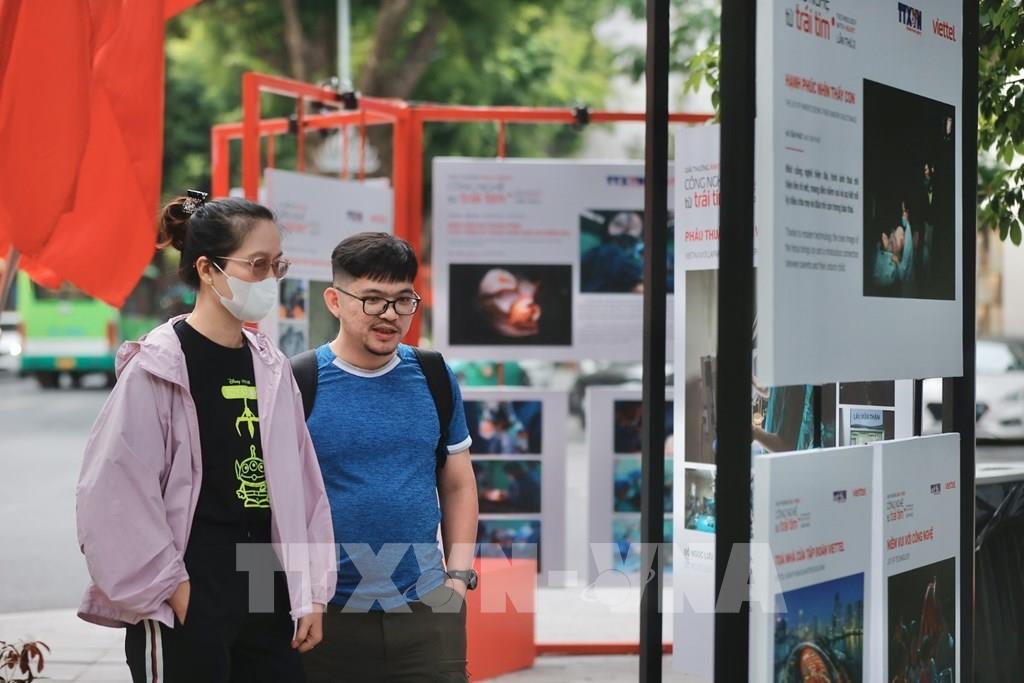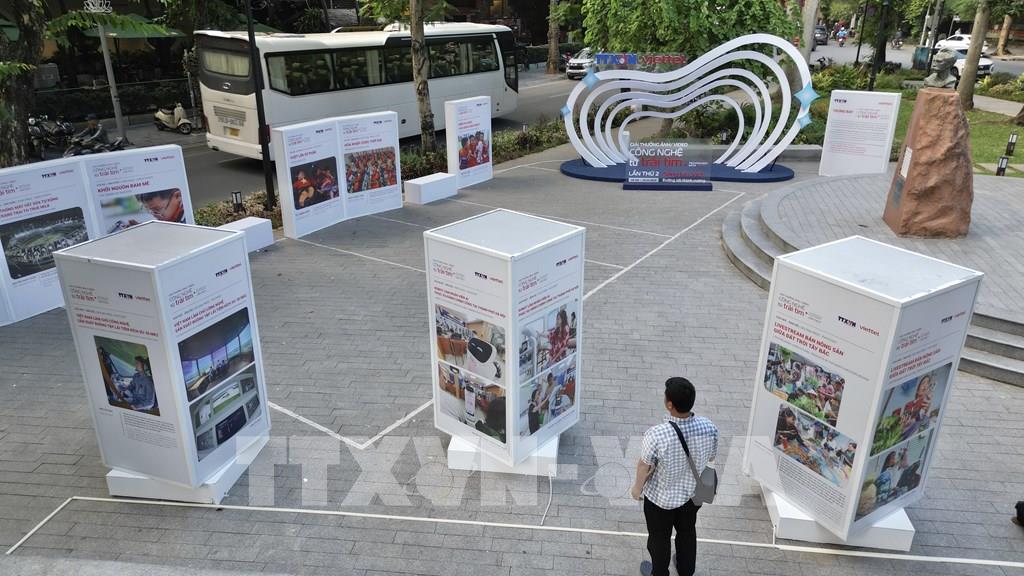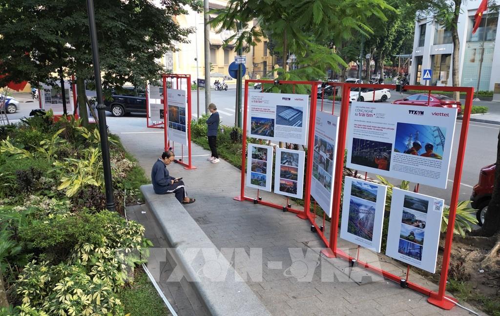 Triển lãm ngoài trời "Công nghệ từ trái tim" diễn ra tại Vườn hoa Tao Đàn, không gian xanh giữa trung tâm Hà Nội từ tối 23/10 đến hết ngày 26/10. Ảnh: Minh Quyết - TTXVN
